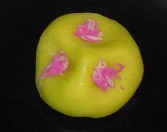 きょうの和菓子は、蓮華草。緑色の草むらに、赤むらさきの小花が3つ。れんげの花をそのまま写したような細かい仕事がしてありました。