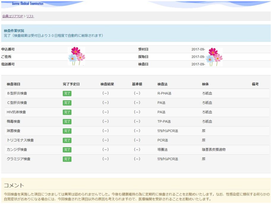 個人情報に関する部分はコスモスのイラストで隠しています。